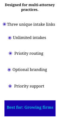 Fill out the firm signup form and you’ll receive your unique intake link by email.
